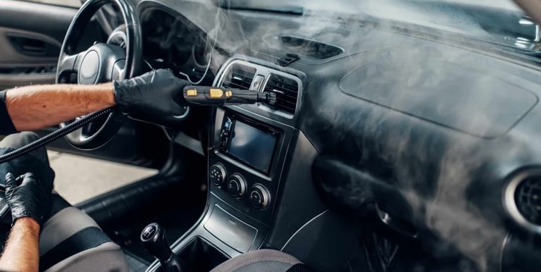 Deep vacuum, upholstery cleaning, and dashboard polish for a fresh cabin feel.